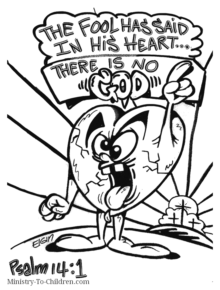Last week, readers on Facebook were asking for resources related to April Fool’s Day. Elgin Bolling, a professional illustrator and sketch artist from New York City, took up the challenge and created this cartoon & coloring page based on Psalm 14:1.