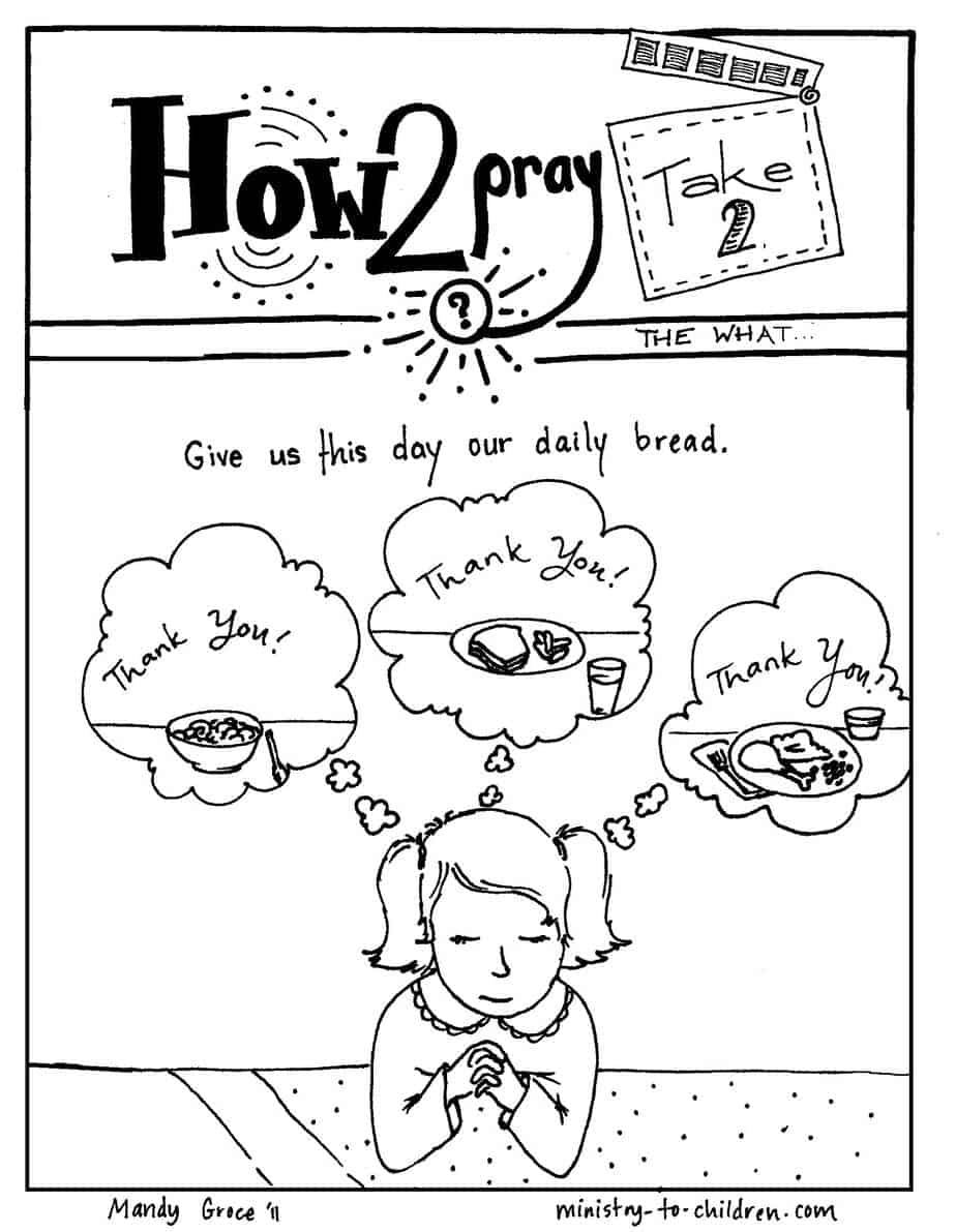 This is the second sheet in our free Lord’s Prayer coloring book. This page emphasized the prayer that God would provide for our physical needs, “Give us this day our daily bread.”
