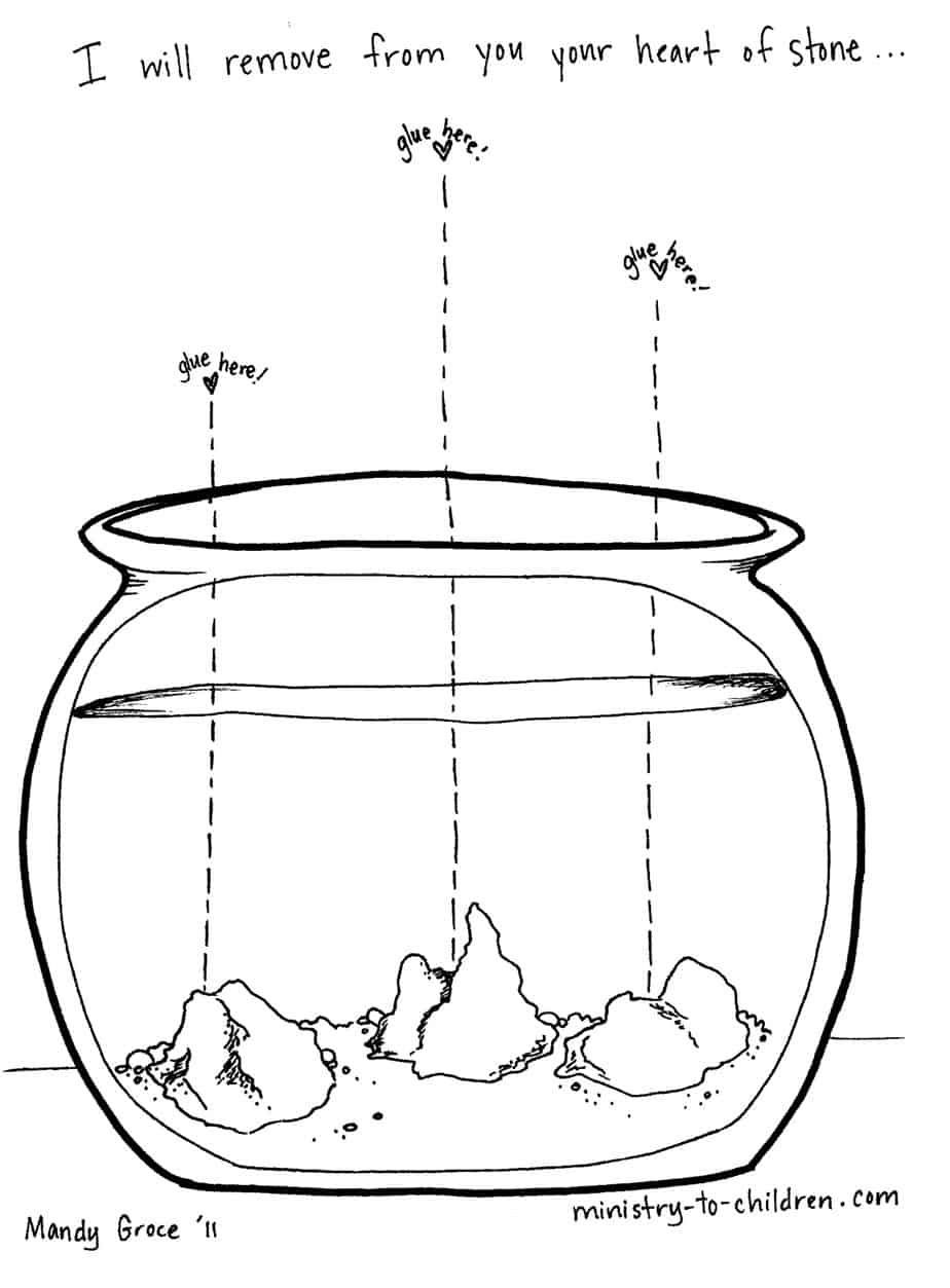 Directions: Download both pictures and have the children decorate them with crayons, markers, or colored pencils. Cut out the “heart of flesh” pictures and paste them on the “heart of stone” page. The pdf version below is print friendly and the jpeg if for advanced users who would like to modify the image using their own software.