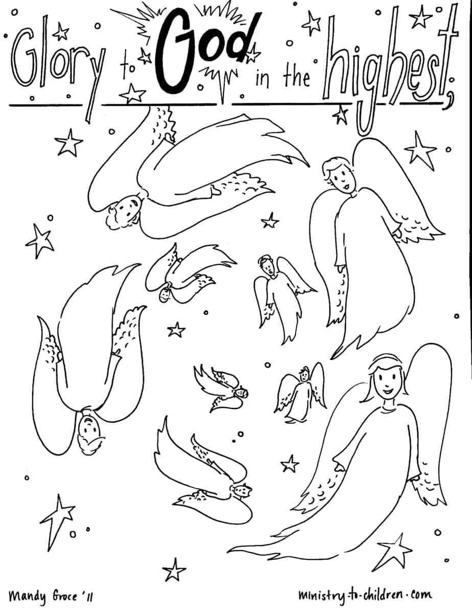Download these free coloring pages to use in your church, home, or school around Christmas. The first page has Angels singing overhead and the second shows shepherds keeping their flocks by night.
